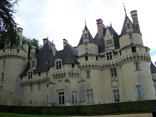 Dimos un par de vueltas y nos decidimos por un sitio que tenía buena pinta. Nos sentamos, nos trajeron la carta y... todavía no nos han venido a atender... jeje, en realidad al cuarto de hora de que nadie nos hiciese caso y tras ver que otros clientes se habían tenido que levantar a echarle la bronca, nos fuimos con la no menos sana intención de buscar otro sitio donde matar el hambre. Encontramos hasta otros tres, peeeeeeero, en dos de ellos nos dijeron que ya tenían la cocina cerrada (eran ya las ... 13:45!!!!). Por suerte encontramos un pequeño restaurante en el que nos sirvieron un estupendo filete con patatas que nos quitó la hambruna que ya teníamos. Una vez comidos partimos hacia el siguiente destino, el Chateau d'Usse, también llamado el de la Bella Durmiente. Dice la leyenda que el autor del cuento de la Bella Durmiente se basó en ese castillo y en la zona en la que está para escribir el susodicho cuento... Aquí Marta (nuestra voz del Tom Tom) se volvió un poco loca y se empeñó en meternos dentro del castillo por las diferentes puertas de servicio que se encuentran en la parte de atrás de la finca y desde las que no se ve el castillo. Total que de rebote y tras dar la vuelta en un par de sitios en los que la carretera se acababa, llegamos a un cruce donde se nos indicaba la entrada del castillo. Aparcamos, entramos y lo fuimos viendo según el "orden de la visita". La capilla, las cuadras, los jardines, el castillo... De nuevo es un castillo privado y, a pesar de que el edificio es tremendo, de nuevo encontramos fallos en su mantenimiento. Mucho moho, paredes con mal color o con trozos rotos, objetos llenos de polvo o de mierda (con perdón)... en fin que nos defraudó un poco el estado, teniendo en cuenta lo majestuoso de la construcción.