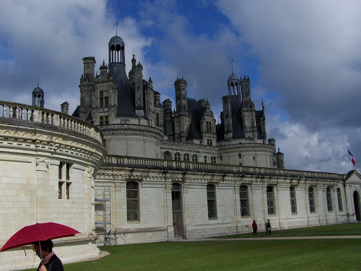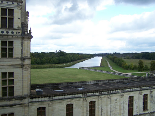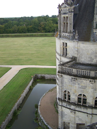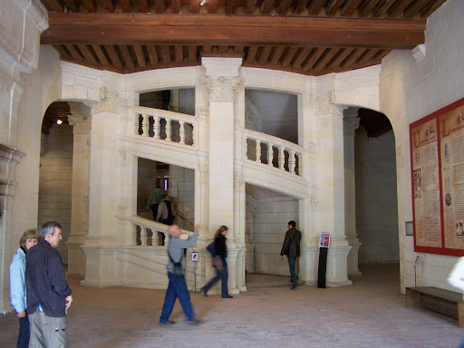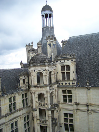 La escalera tiene dos entradas en el mismo piso, si dos personas entran en cada una de las entradas y suben a la primera planta a la vez, en ningún momento llegan a pisar los mismos escalones, no se cruzan... Dicen, por esto es bueno cogerse las audioguías, que no se sabe quien fue el arquitecto del castillo, pero se han encontrado varios planos que podrían pertenecer a Leonardo da Vinci que sería el artífice de las escaleras y de otras peculiaridades del castillo. Entorno a la escalera vimos multitud de cosas en las diferencias estancias que visitamos durante las casi 3 horas!!! que estuvimos dentro del castillo. Cuando creiamos que lo habíamos visto todo nos faltaba un ala entera por ver, que de hecho era de las importantes puesto que eran los aposentos del rey. En este castillo, por primera vez, nos "dejaron" subir a las terrazas del mismo, donde se podía admirar la magnitud del castillo y de los terrenos que colindaban.