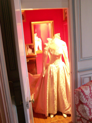 De los que hemos visto es el que más parece un palacio que un castillo, no está en una zona elevada, no tiene foso (al menos no aparentemente, después vimos que por detrás si) y no tiene grandes torres ni partes destacas, es más uniforme. Llegamos a la entrada y comenzamos la visita por el interior, éste castillo es privado, pero está cuidado, casi mimado todo con mucho detalle. De hecho nos sorprende ver como durante la visita hay personal limpiando hasta los soportes de las cintas que te ponen para que no entres donde no puedes entrar :D. Otra curiosidad de estos castillos privados es que suelen tener, además de su árbol genealógico, fotos de la familia actual y éste no podía ser menos. En una de las cómodas había sendas fotos de la familia, además de poder observar en una de las estancias el vestido de novia de la actual esposa del marqués propietario del castillo y alrededores.