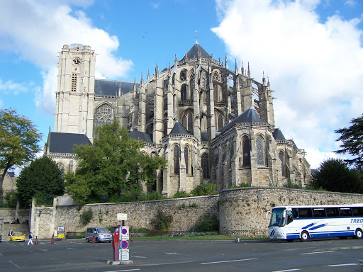 Después de unas dos horas de interminables carreteras con rectas laaaaaaaaaaargas largas largas, muy muy aburridas, entramos en Le Mans, desde unos kilómetros atrás se nota que el ambiente "racing" es mayor en esta zona. Mucha moto por la carretera, muchos coches "maqueados" y a toda leche, guardarrailes triples, pianos pintados en la carretera, vayas publicitarias, coño! si esto es un trozo del circuito que es parte de la carretera por la que vamos!! :D, lástima que no esté cerrado al tráfico. Llegamos al centro de Le Mans, aparcamos en un amplio parking delante de la catedral, en el que hay que pagar claro, 2€=1h... vaya robo!. Subimos a la catedral, es enooooooooooorme, pero está en obras y eso la desluce un poco. En la base de la catedral, unos ingleses odiosos con sus ferraris, que encima seguro que no pagaron parking!!